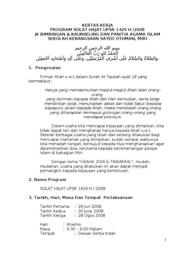 Contoh Kertas Kerja Solat Hajat Pdf