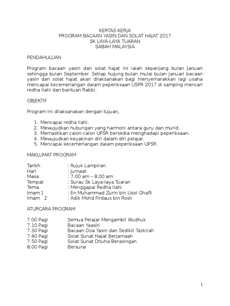 Kertas Kerja Solat Hajat Amp Bacaan Yasin Pdfcoffee Com