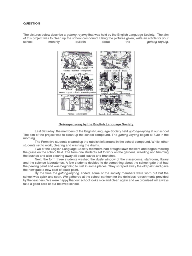 Contoh karangan laporan gotong royong upsr english paper help your. Means shoulder to shoulder in carrying out activities that aim to build a. Contextual translation of definisi aktiviti gotong royong into English.
